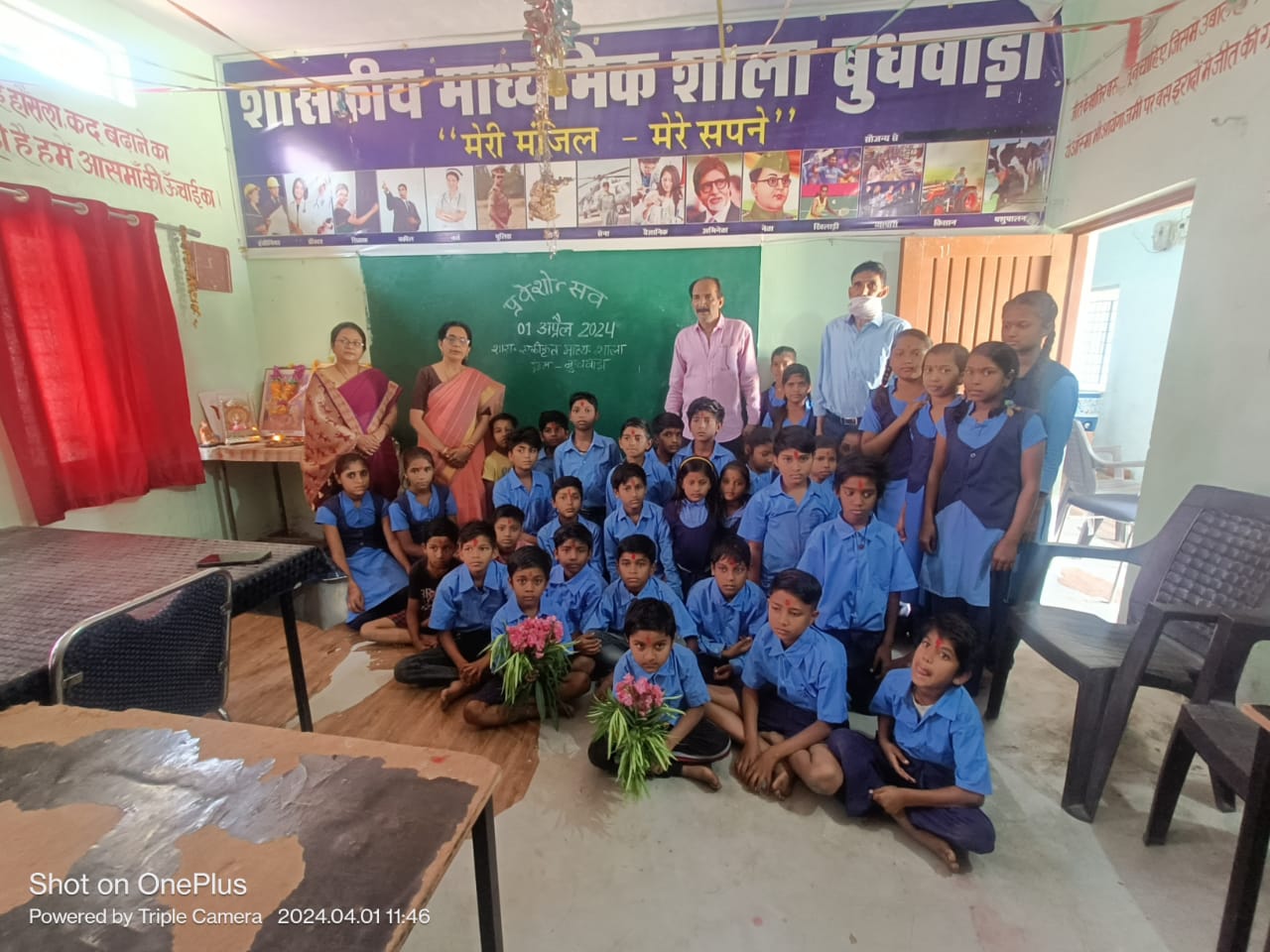 आज दिनांक 1/4/2024 को शा. मा.शाला बुधवाड़ा में बहुत ही हर्षोल्लास के साथ सत्र 2024-25 का प्रारंभ किया ,,,जिसमें नव प्रवेशी बच्चों का स्वागत तिलक लगाकर ,पुष्प भेंट कर किया गया तथा बच्चों को विशेष भोज कराया गया कार्यक्रम में प्रधान पाठक श्री अंजनी कुमार दीवान, श्री मानसिंह चौहान, श्रीमती अपर्णा जोशी व श्रीमती अंजू तिवारी सभी शिक्षक उपस्थित थे