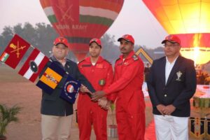 A Hot Air Balloon Expedition under the aegis of the Army Adventure Wing, conducted by 3 EME Centre, was ceremonially flagged off from Bhopal by Lt Gen Arvind Chauhan, General Officer Commanding (GOC)Sudarshan Chakra Corps, along with Mrs Manjali Chauhan, Zonal President AWWA.