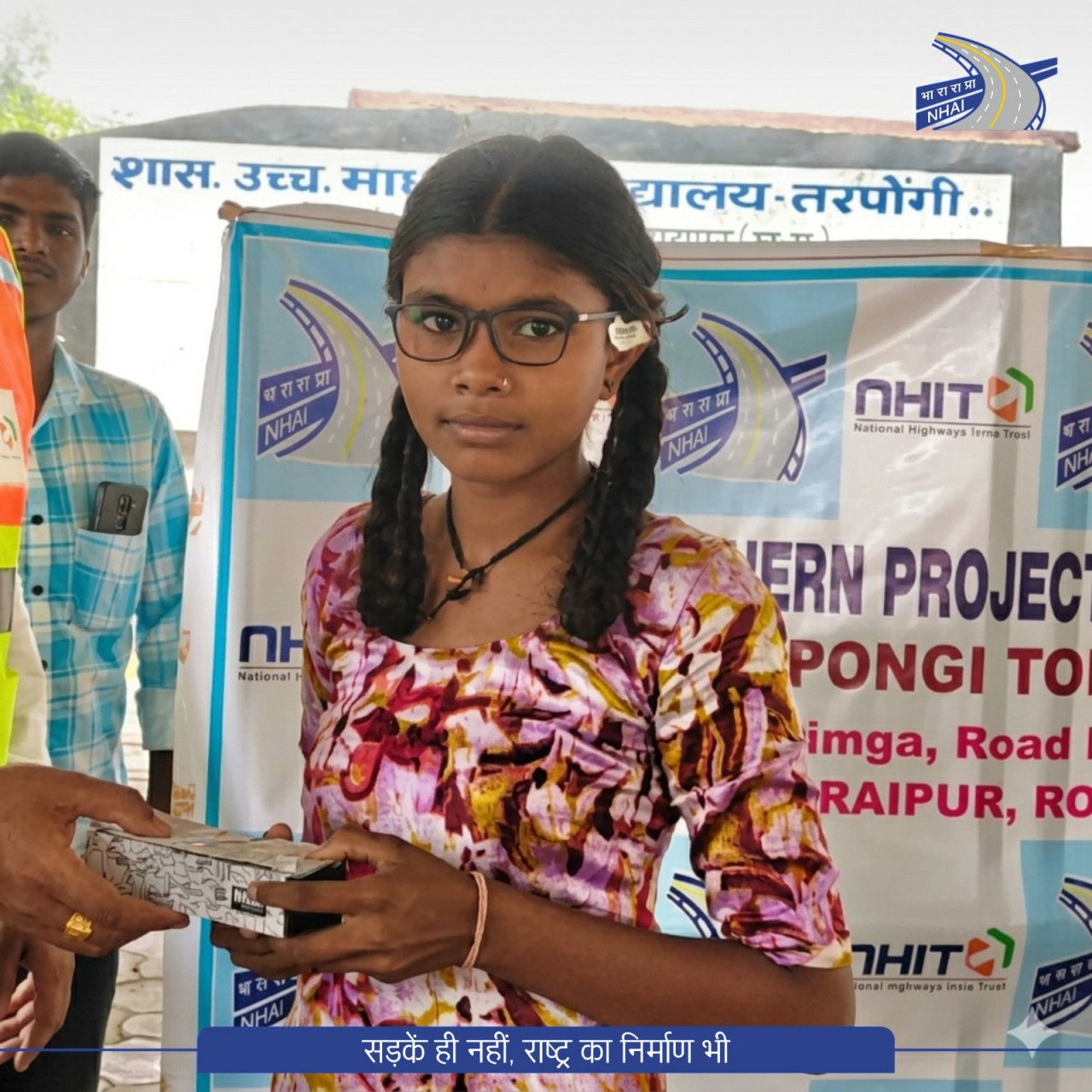 रायपुर,  भारतीय राष्ट्रीय राजमार्ग प्राधिकरण (NHAI) क्षेत्रीय कार्यालय, रायपुर और एनएचआईटी (NHIT) ने सामाजिक सरोकार की दिशा में शासकीय उच्चतर माध्यमिक विद्यालय, तरपोंगी में विद्यार्थियों को निशुल्क पावर चश्मों का वितरण किया। गौरतलब है कि सड़क सुरक्षा अभियान के तहत पूर्व में विद्यालय परिसर में नेत्र जांच शिविर का आयोजन किया गया था, जिसमें कुल 517 विद्यार्थियों की आंखों का विशेषज्ञों द्वारा परीक्षण किया गया। इस जांच के दौरान जिन 42 बच्चों की दृष्टि कमजोर पाई गई थी, आज उन्हें उनकी आवश्यकता और निर्धारित पावर के अनुसार उच्च गुणवत्ता वाले चश्मे सौंपे गए।
