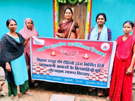 सुकमा। मुख्य कार्यपालन अधिकारी जिला पंचायत सुकमा श्री मुकुन्द ठाकुर के कुशल निर्देशन एवं मार्गदर्शन में सुकमा जिले के विकासखंड कोटा, सुकमा एवं छिंदगढ़ में दीपावली पर्व पर एक अनूठी पहल देखने को मिली। राज्य ग्रामीण आजीविका मिशन (बिहान) के अंतर्गत गठित स्व-सहायता समूह की दीदियों द्वारा बनाए गए सुंदर पर्यावरण-हितैषी मिट्टी के दीये प्रधानमंत्री आवास योजना (ग्रामीण) के 425 हितग्राहियों को प्रदान किए गए।