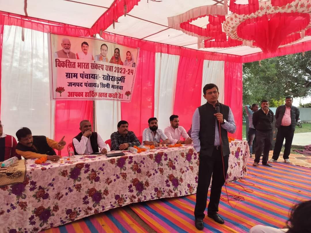 जिले में विकसित भारत संकल्प यात्रा सुचारु रुप से जारी हैं। संकल्प यात्रा जिले के ग्रामीण क्षेत्रों में निकली जा रही है, जिसमें केंद्र एवं राज्य शासन द्वारा संचालित योजनाओं से पात्र हितग्राहियों को लाभान्वित किया जा रहा है। बुधवार को नर्मदापुरम कलेक्टर श्री नीरज कुमार सिंह ने सिवनीमालवा अंतर्गत ग्राम रजोराकुर्मी में आयोजित संकल्प यात्रा कार्यक्रम का निरीक्षण किया। इस दौरान उन्होंने ग्रामीणों से सीधे संवाद कर केंद्र एवं राज्य शासन द्वारा संचालित योजनाओं में लाभ के संबंध में जानकारी प्राप्त की। ग्रामीणों से चर्चा उपरांत उन्होंने अधिकारियों को आवश्यक दिशा निर्देश दिए।