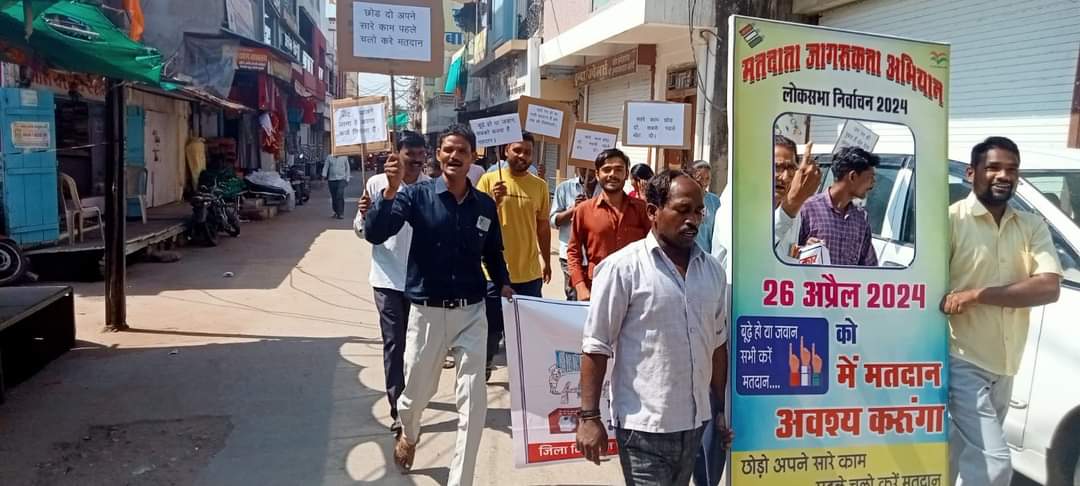 # के अंतर्गत मतदाता जागरूकता अभियान के तहत 18 अप्रैल गुरुवार को नर्मदापुरम जिले के नगर परिषद माखननगर द्वारा नगर परिषद कार्यालय से मतदाता जागरूकता रैली निकाली गई। रैली नगर परिषद से शुरू हुई जो मंगलवारा बाजार, इंदोरी चौराहा, मेन रोड होते हुए निकली गई। मतदाता जागरूकता रैली में मतदाताओं को पंपलेट, जनजागरूक स्लोगन एवं नागरिकों को नारों के माध्यम से मतदान दिवस 26 अप्रैल को शत प्रतिशत मतदान करने के लिए प्रेरित किया। मतदाता जागरूकता रैली नगर परिषद के अधिकारी एवं कर्मचारीयों सहित नागरिक उपस्थित थे।